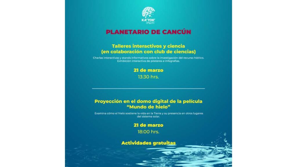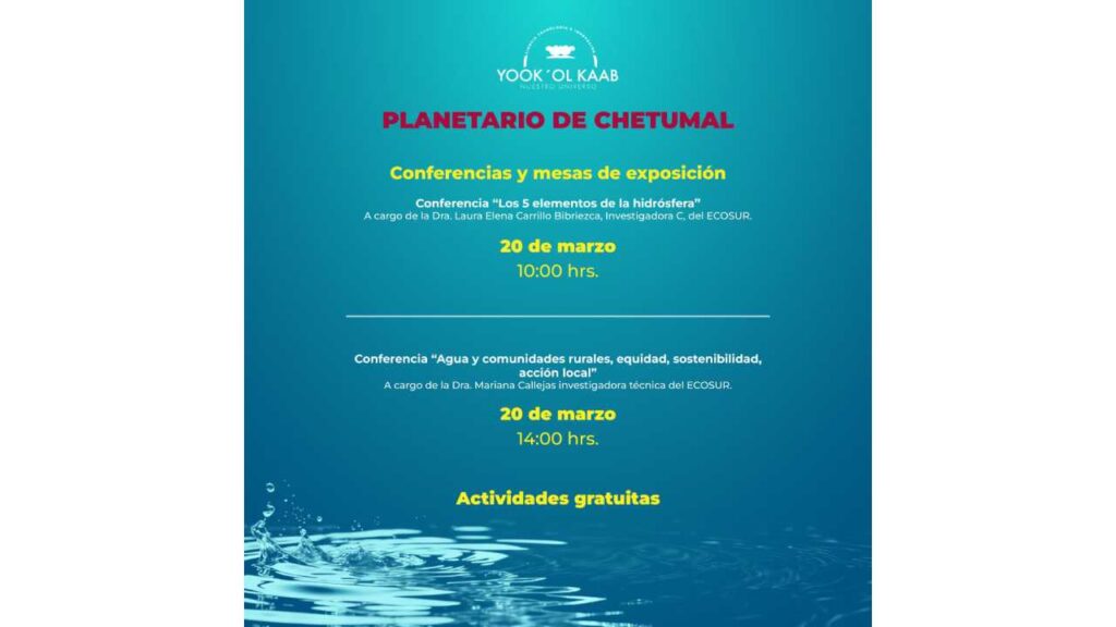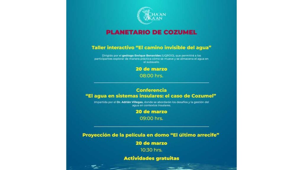 Las actividades se llevarán a cabo en los planetarios Yook’ ol Kaab en Chetumal, Sayab en Playa del Carmen, Ka’Yok’ en Cancún y Cha’an Ka’an en Cozumel, espacios diseñados para la divulgación científica y educativa.
