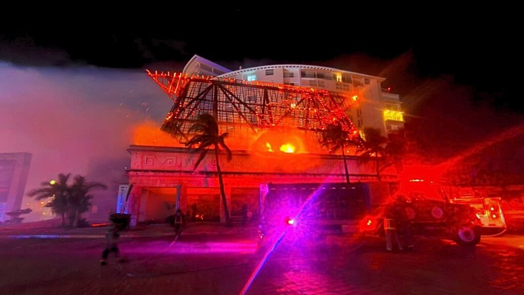 Un incendio en Zona Hotelera Cancún movilizó la noche de este 21 de marzo a elementos de Bomberos, luego de que un establecimiento tipo palapa se incendiara, generando una rápida respuesta para evitar su propagación.