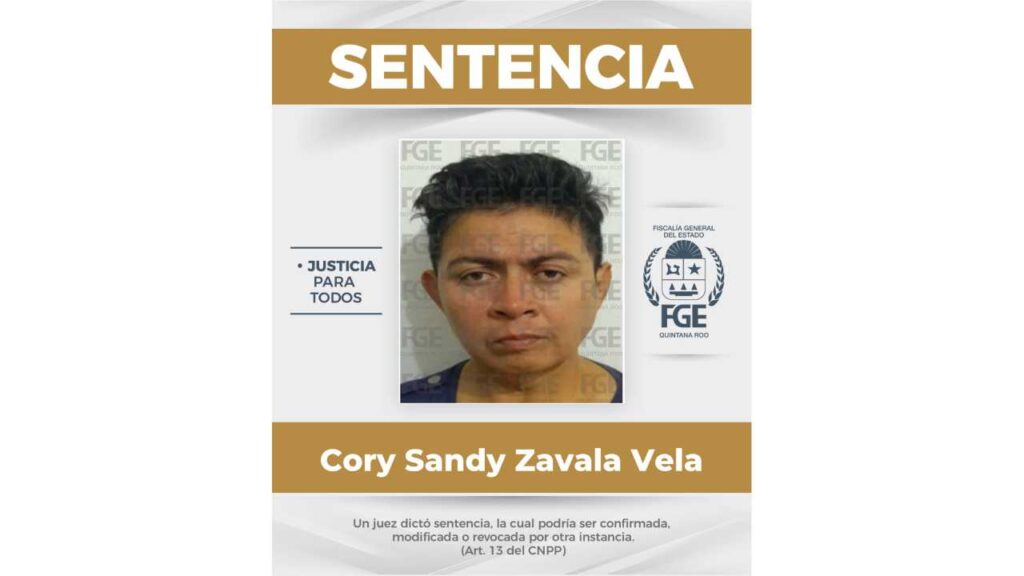 En Benito Juárez, Cory Sandy Zavala Vela fue sentenciada a 18 años de prisión por su participación en la desaparición de dos hombres.