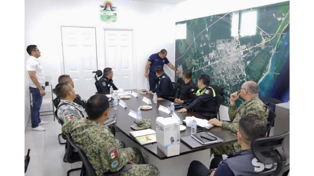 Reunión de altos mandos en Tulum para la estrategia de seguridad durante las vacaciones de Semana Santa. Credit: Cortesía / SSC