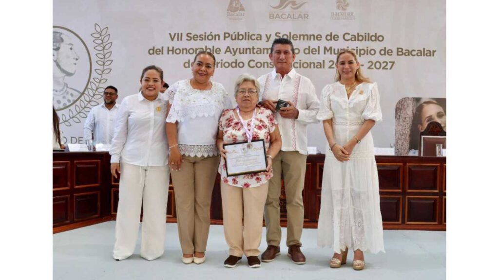 El municipio de Bacalar otorgó la Medalla al Mérito de la Mujer “Rossina Castillo Rodríguez” a Ayde del Socorro Potenciano Pérez, en reconocimiento a su trayectoria y contribución al desarrollo social de la comunidad.