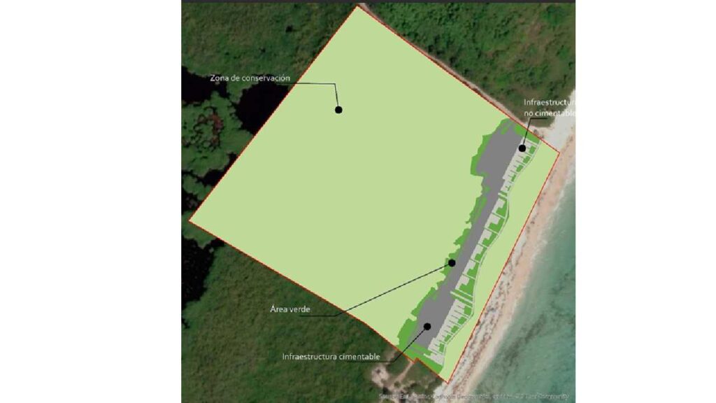 De acuerdo con la documentación presentada, el desarrollo incluirá infraestructura como bar de playa, piscinas desmontables, pérgolas y espacios de convivencia, así como áreas destinadas a la conservación de manglar, duna costera y cuerpos lagunares.