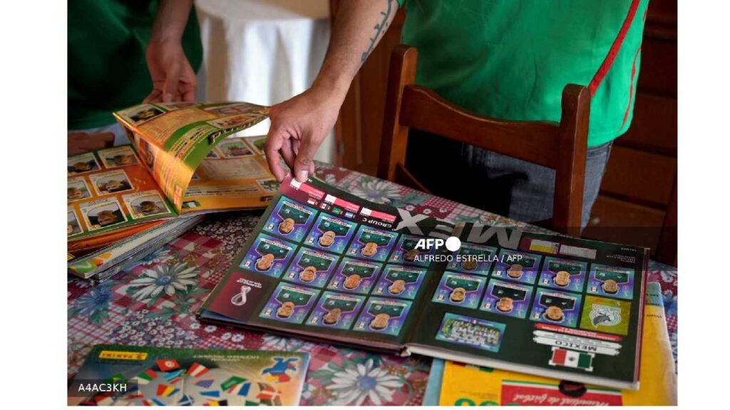 El consultor financiero mexicano y aficionado al fútbol, ​​Jairo Rueda, de 31 años, revisa un álbum de fotos de una copa de fútbol durante una entrevista con AFP en la Ciudad de México el 21 de marzo de 2026.