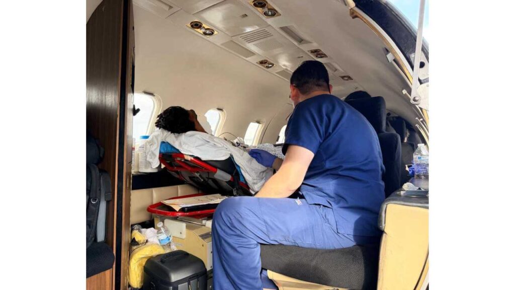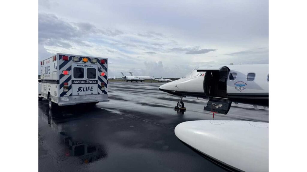 Un paciente con graves quemaduras fue trasladado de Playa del Carmen a la CDMX. Credit: Cortesía / CGC