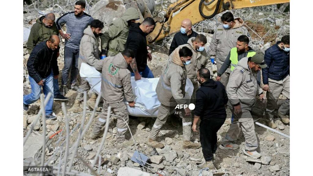 Los servicios de emergencia evacuaron un cadáver del lugar del ataque israelí nocturno que tuvo como objetivo la aldea de Kfar Hatta, en el sur del Líbano, el 5 de abril de 2026. Un ataque israelí contra Kfar Hatta, en el sur del Líbano, lejos de la frontera con Israel, causó la muerte de siete personas el 5 de abril, entre ellas una familia de seis miembros, según informó a la AFP una fuente de la defensa civil libanesa.