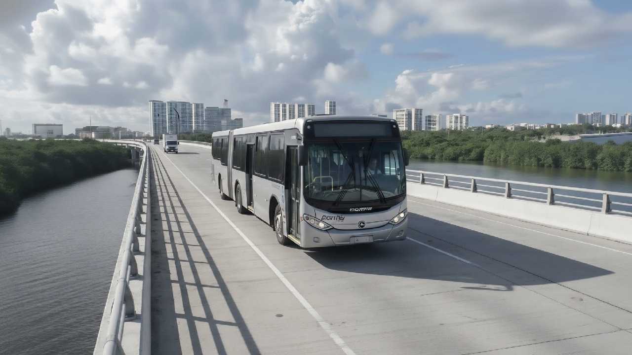 Para la conexión con la Zona Hotelera a través del Puente Nichupté, se contempla el uso de unidades más pequeñas, de entre 10.5 y 11.2 metros, adaptadas a las condiciones de la infraestructura.