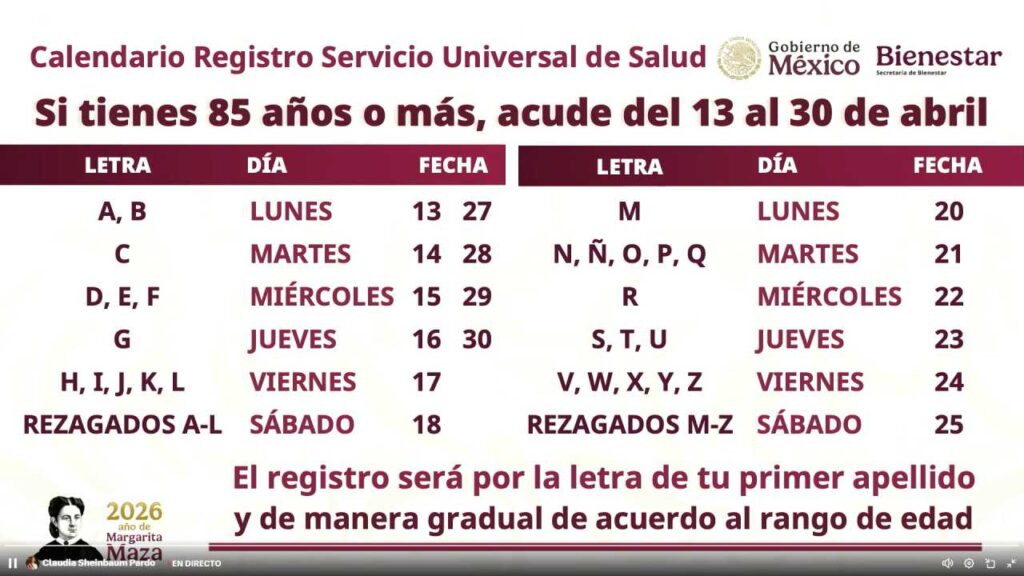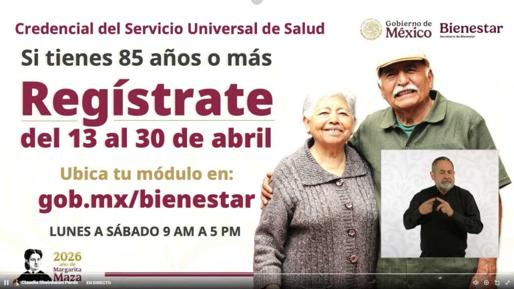 Para obtener la credencial para el Servicio Universal de Salud, del 13 al 30 de abril se podrán registrar los adultos mayores de 85 años y más y al acompañante o cuidadores.