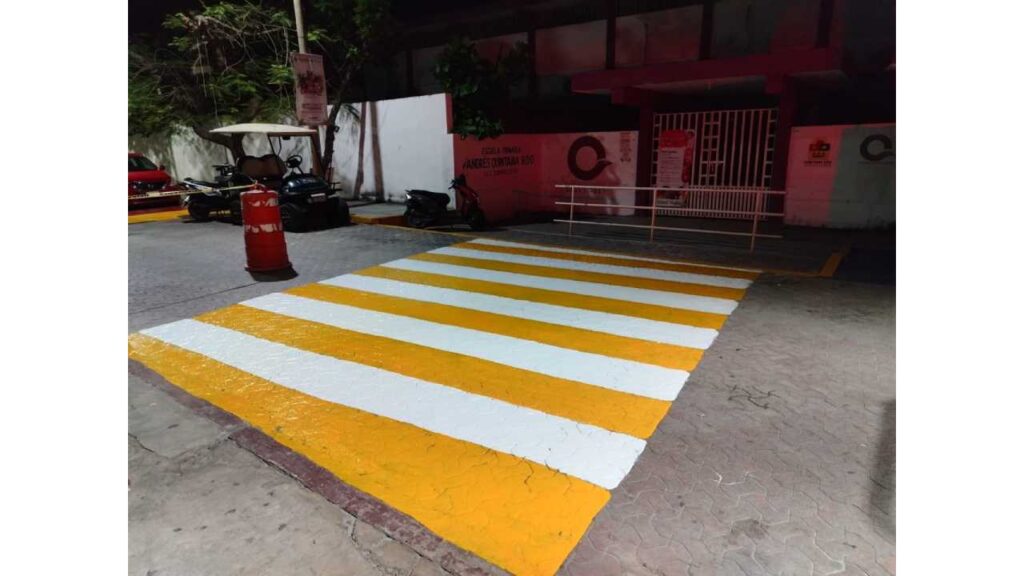Como parte de estas labores, en Isla Mujeres la Dirección de Tránsito y Vialidad llevó a cabo la pinta de pasos peatonales en zonas escolares, con el objetivo de mejorar la seguridad vial para niñas, niños y jóvenes.