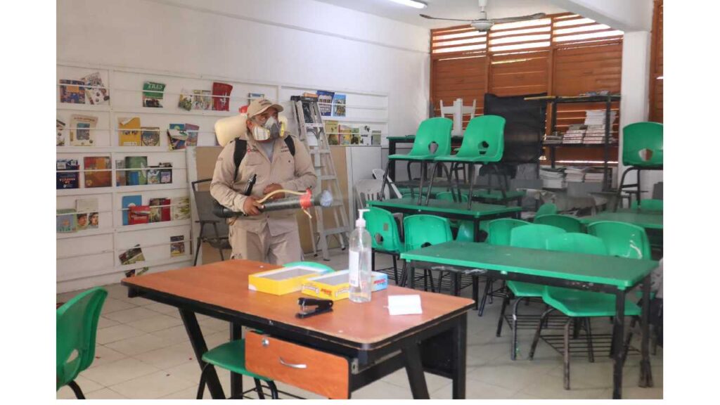 Además, en coordinación con la Secretaría de Salud y el área de Vectores, se implementaron jornadas de termonebulización en los planteles, con el fin de prevenir enfermedades como el dengue y proteger a la comunidad educativa.