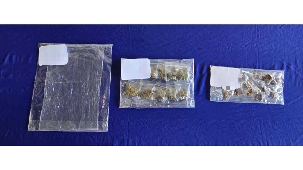 Tras la revisión, los elementos encontraron bolsitas con hierba verde seca con características de la marihuana, así como otros envoltorios sospechosos.