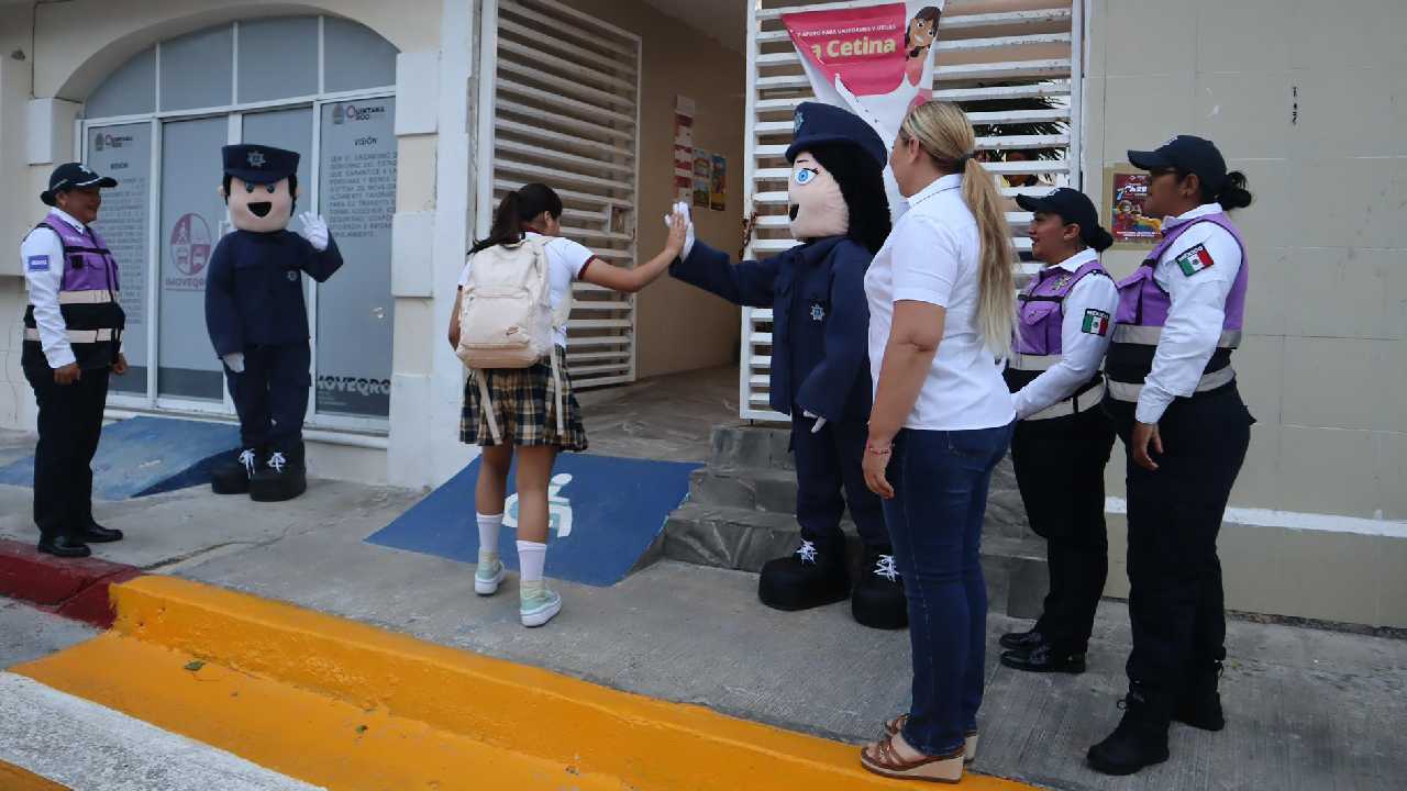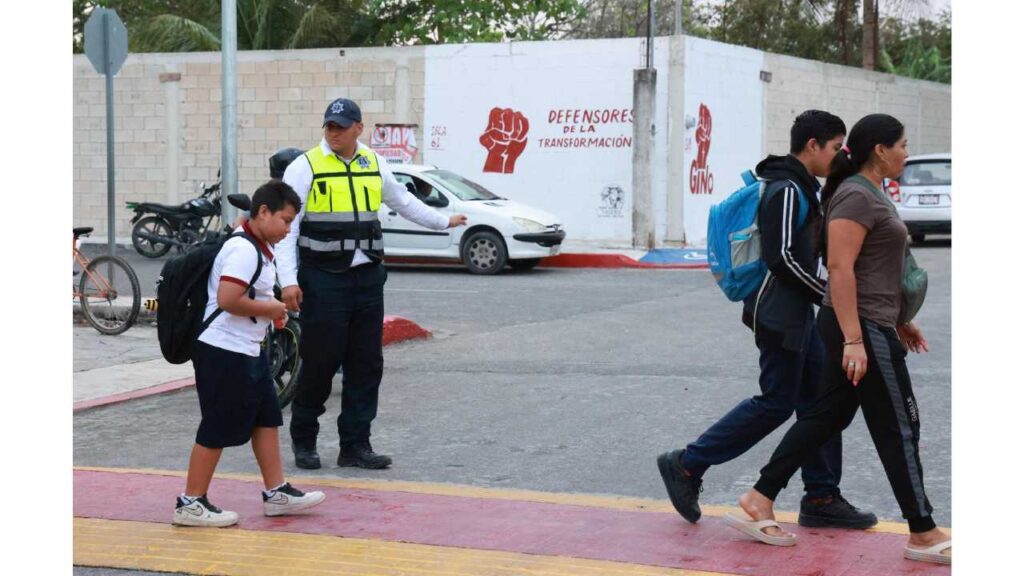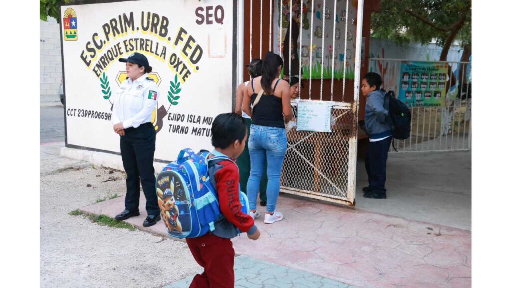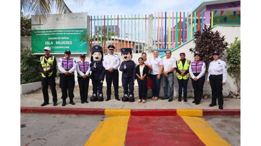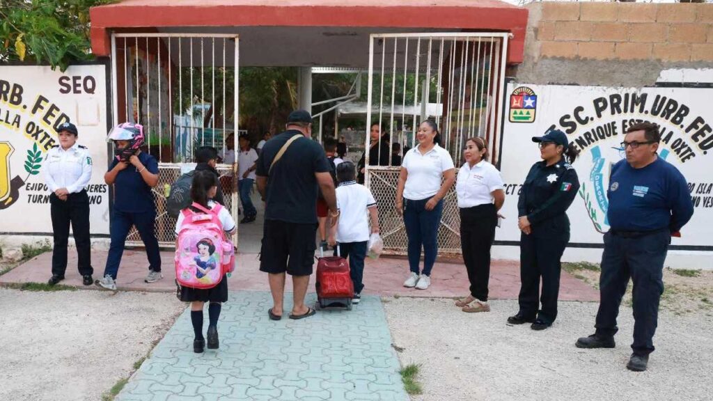 En Isla Mujeres, autoridades supervisaron la implementación del programa Escuadrón Vial Escolar, con el objetivo de reforzar la seguridad en las zonas cercanas a los planteles. También se verificaron trabajos realizados durante las vacaciones, como la pintura de pasos peatonales y acciones de termonebulización.