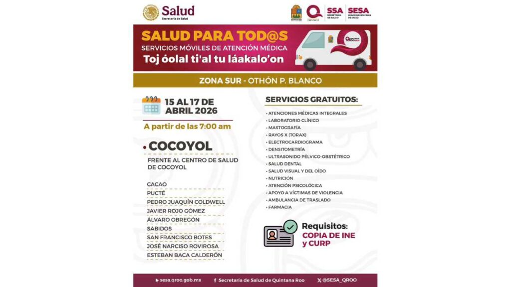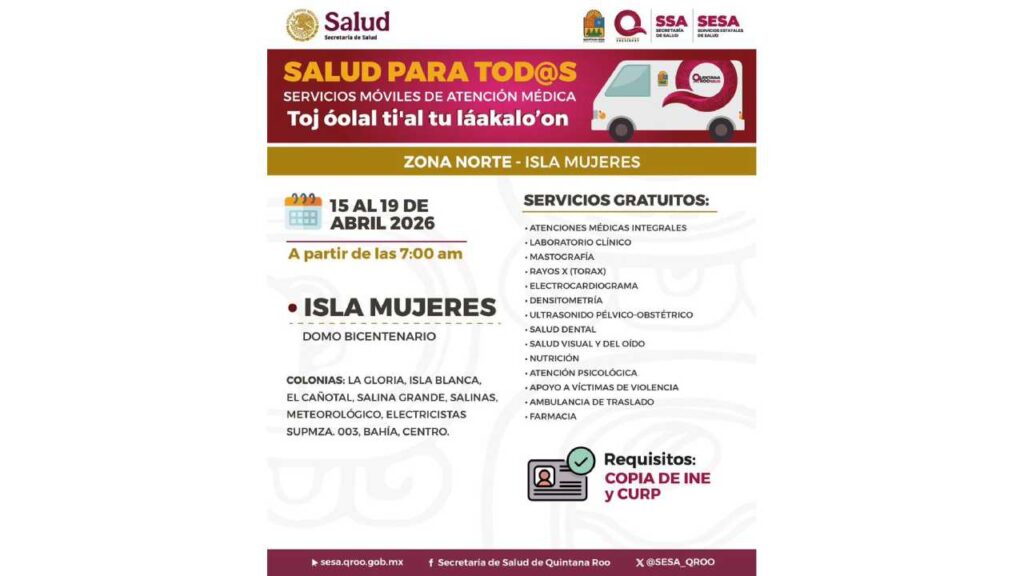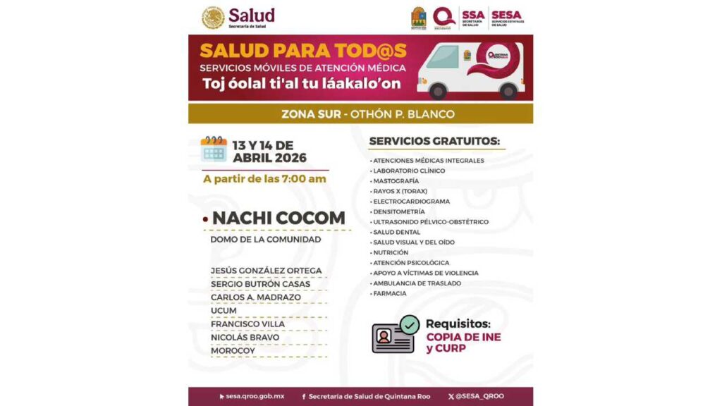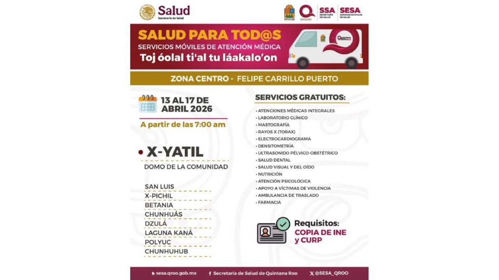 Las caravanas de salud, uno de los programas más importantes del estado, arribaron este lunes 13 de abril a comunidades de Isla Mujeres, Othón P. Blanco y Felipe Carrillo Puerto, con el objetivo de acercar servicios médicos gratuitos a la población.