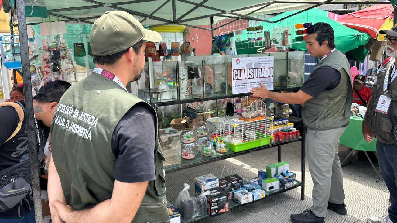 También se informó que durante la inspección en este tianguis, personal de Ecología, Comercio en la Vía Pública, Seguridad Ciudadana y Protección y Bienestar Animal detectó la comercialización de especies protegidas.