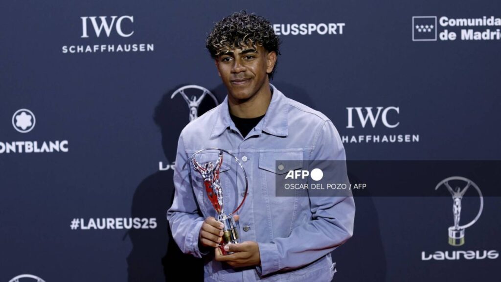 "Lamine Yamal, delantero del FC Barcelona, se convierte en el primer ganador de la categoría Mejor Deportista Joven en la historia de los Laureus. Credit: Oscar del Pozo / AFP.