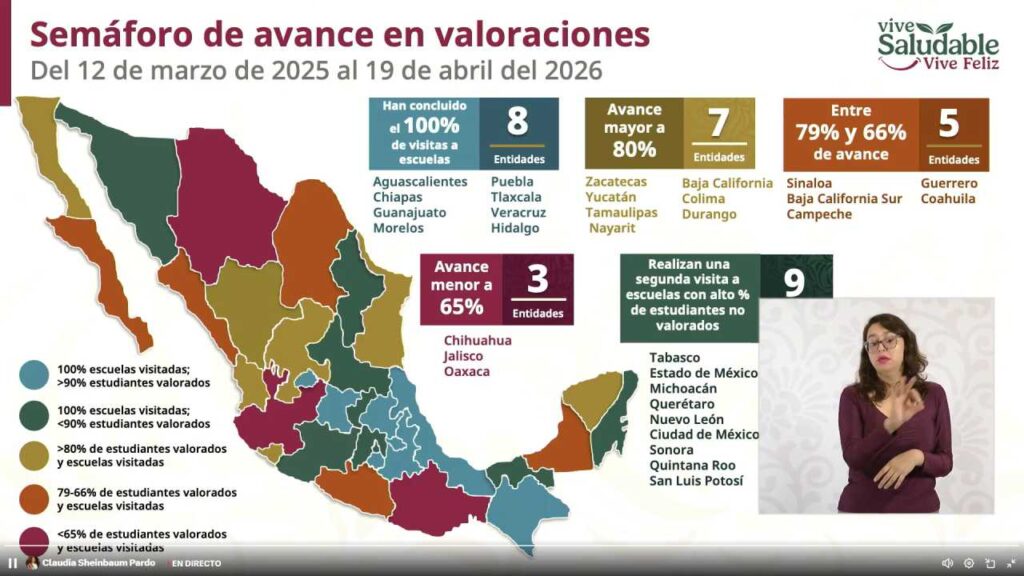 El funcionario informó que Quintana Roo forma parte de nueve estados donde brigadistas regresarán a planteles educativos para completar las valoraciones pendientes. A nivel nacional, el programa ya benefició a 9 millones 882 mil 944 alumnos, equivalente al 85% del total estimado.
