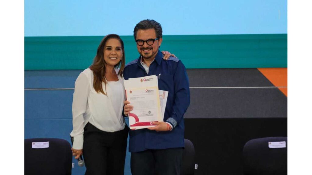 Al cierre del evento, Mara Lezama entregó documentación para la donación de predios destinados a nueva infraestructura médica del IMSS en Cancún y Cozumel.