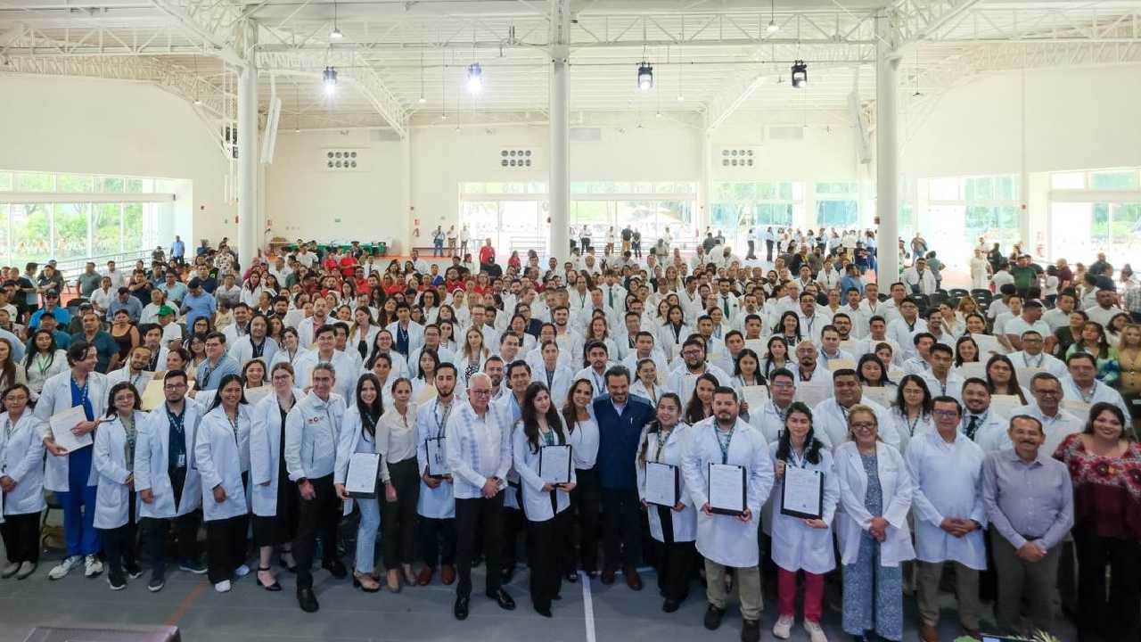 La gobernadora Mara Lezama Espinosa y el director general del IMSS, Zoé Robledo Aburto, encabezaron la ceremonia de bienvenida al nuevo personal médico, considerado parte de una estrategia histórica para ampliar la cobertura y mejorar el servicio a derechohabientes.