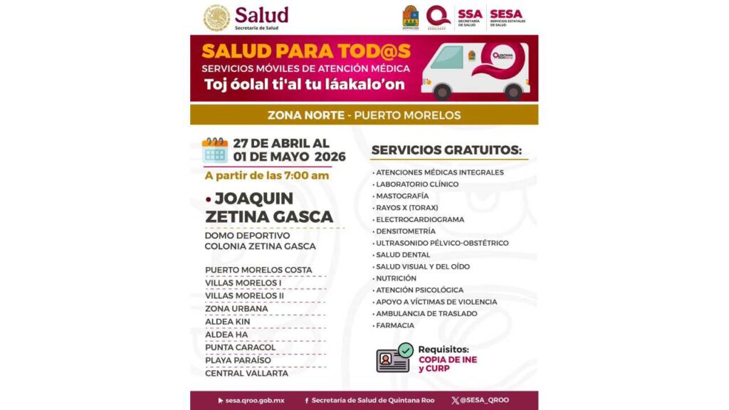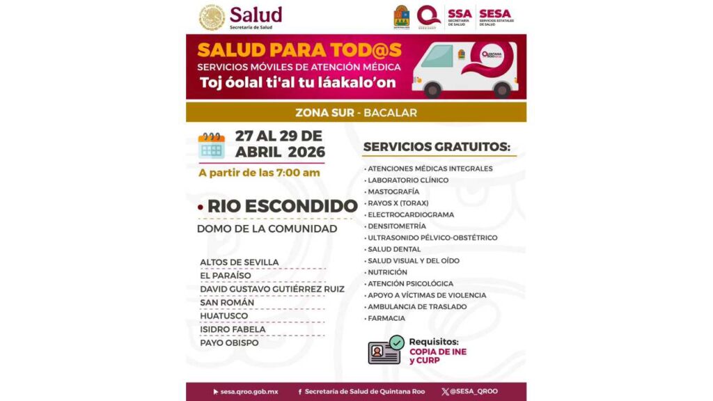 La gobernadora de Quintana Roo, Mara Lezama Espinosa, invitó a las familias a aprovechar estos módulos para detectar enfermedades a tiempo o atender padecimientos sin costo.