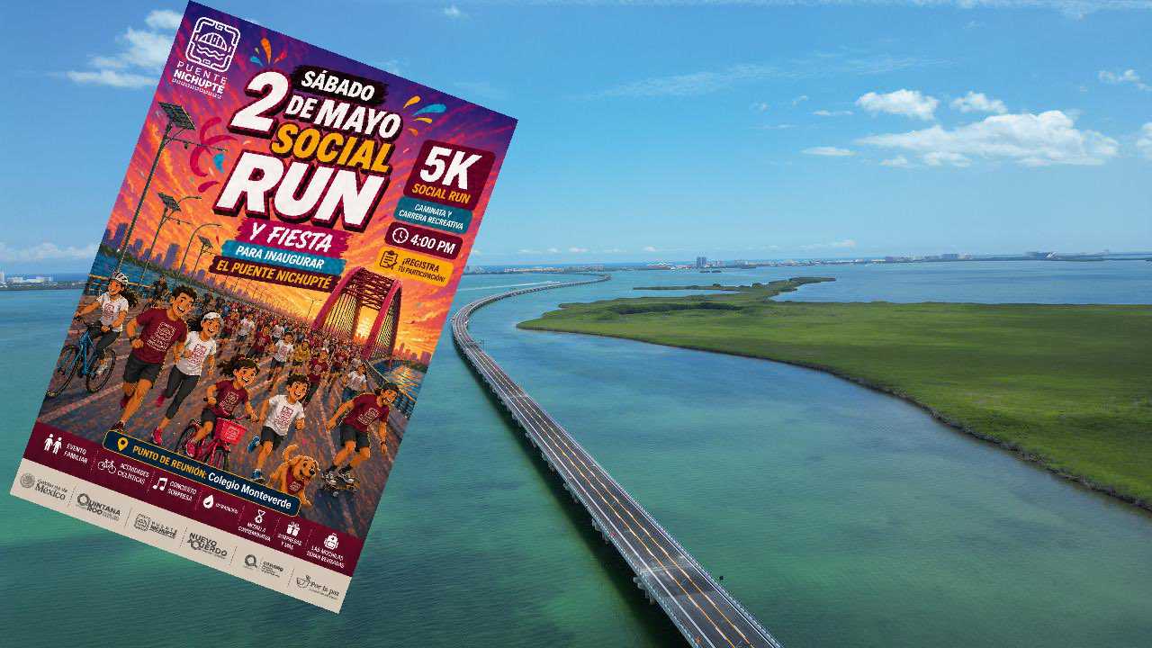 El evento contempla una “Social Run” de 5 kilómetros que integra caminata, carrera y rodada familiar, sin carácter competitivo. La inauguración del Puente Nichupté será encabezada por la presidenta Claudia Sheinbaum y marcará un momento clave en la conectividad y el desarrollo urbano de la ciudad.