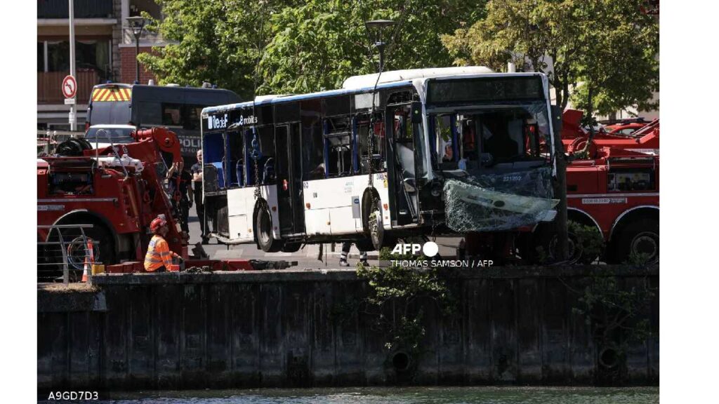 Un accidente en el Sena generó movilización de emergencia en las afueras de París, luego de que un autobús se precipitara al río con cuatro personas a bordo, quienes fueron rescatadas con vida, informaron autoridades locales.