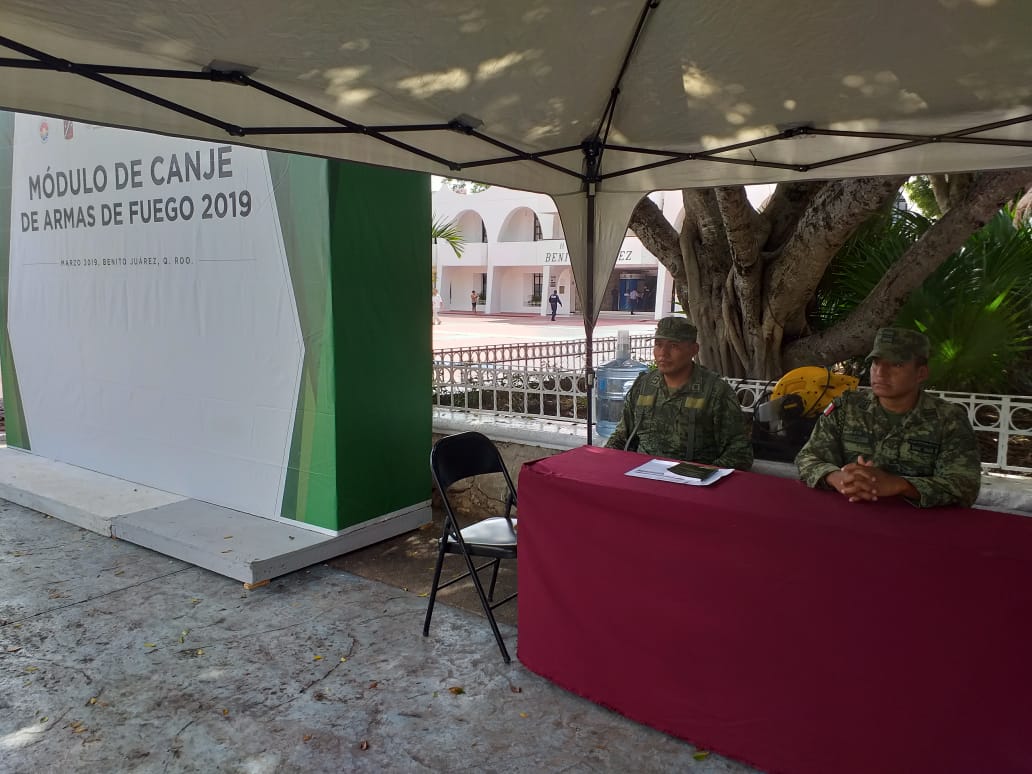 La Sedena invitó a los ciudadanos a entregar las armas o cartuchos útiles en el módulo instalado a un costado de la Plaza de la Reforma, en avenida Tulum.