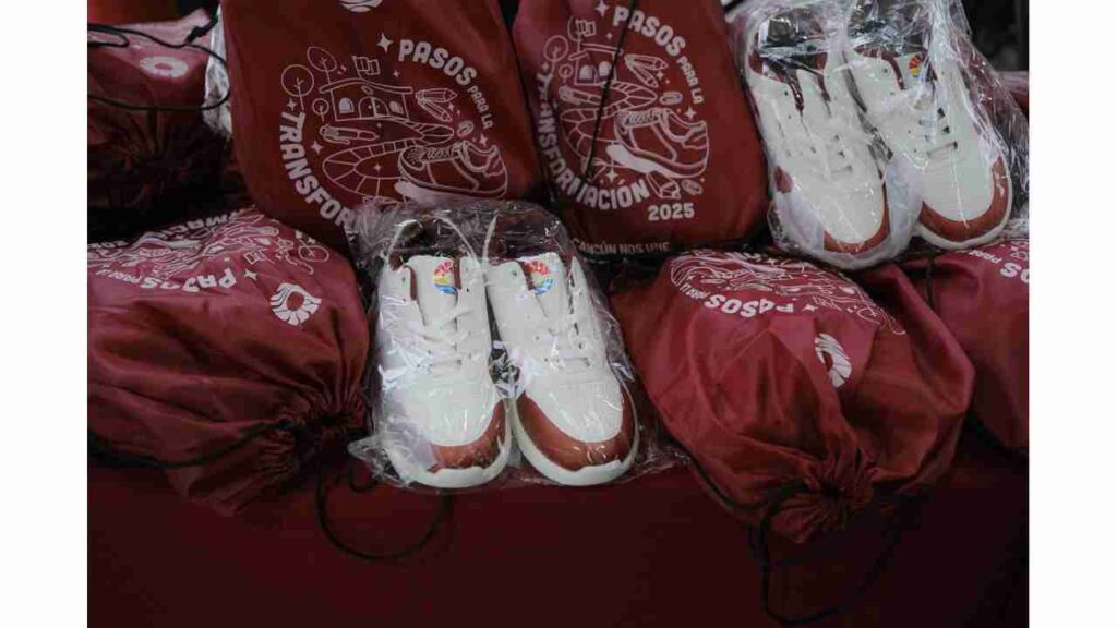 La gobernadora Mara Lezama Espinosa y la presidenta municipal Ana Paty Peralta pusieron en marcha el programa "Pasos para la Transformación" en la Secundaria Técnica 20 Rafael Ramírez Castañeda, en Cancún, con la entrega de calzado deportivo gratuito a estudiantes de nivel básico.