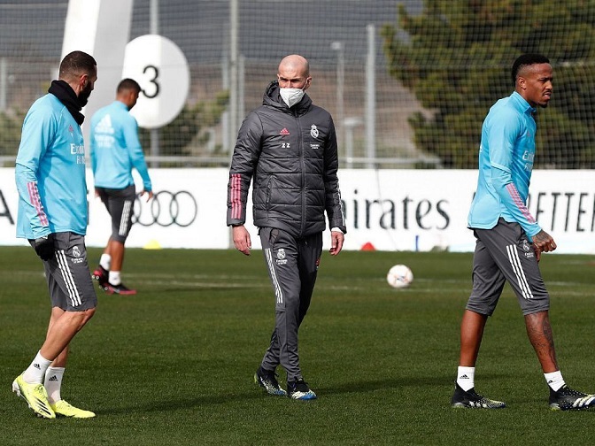 El entrenador francés, Zinedine Zidane, dirigió la sesión de entrenamiento del Real Madrid, tras haber superado el virus
