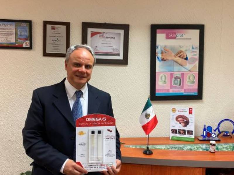 "El Omega 5 extraído del aceite de la semilla de la granada roja, es el único Omega nanoemulsionado en el mercado y el único que atraviesa la barrera hematoencefálica por lo que, crea un efecto preventivo de la muerte neuronal producida por el SARS-Cov-2", explicó el Dr. De Alba.