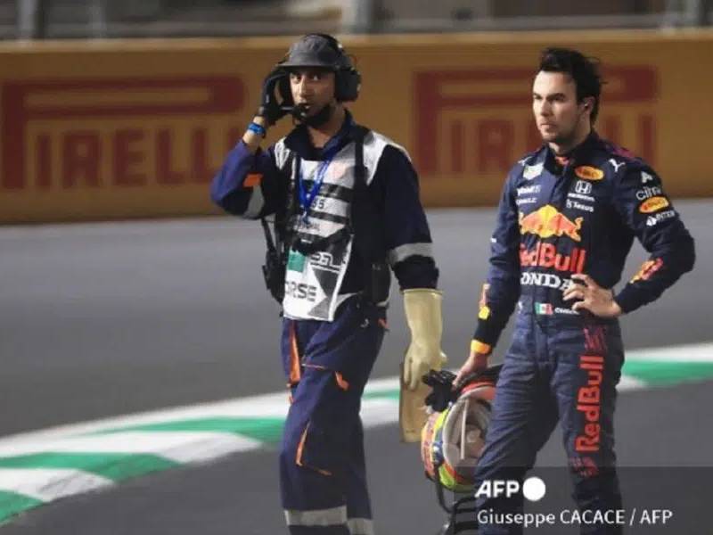 Este domingo, el piloto mexicano no pudo sumar unidades en el GP de Arabia Saudita luego de salir de la carrera por un choque que sufrió, luego de que le tocaron la parte trasera de su carrocería.