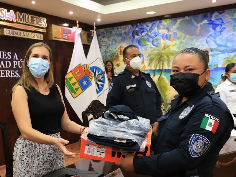 Atenea Gómez Ricalde entrega uniformes a policías municipales de Isla Mujeres