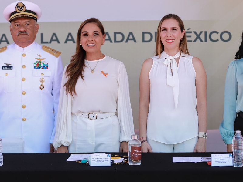 La alcaldesa asistió esta mañana a la Novena Región Naval, a la Ceremonia para conmemorar el 201 Aniversario de la Armada de México, donde acompañó a la Gobernadora del Estado, Mara Lezama Espinosa y al Comandante de la Novena Región Naval, Vicealmirante Gilberto Carballo Ávila.