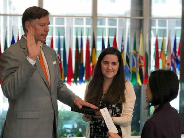 En una breve ceremonia, rendí protesta como embajador. Será un honor representar a los Estados Unidos en México, un país socio, vecino, y amigo. Estoy ansioso por llegar al país y emprender mi importante labor ¡Hasta pronto! pic.twitter.com/jk7Ri4HrPF