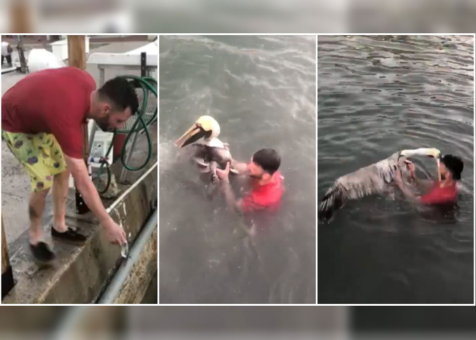 Video: Un hombre engaña a un pelícano y este se defiende