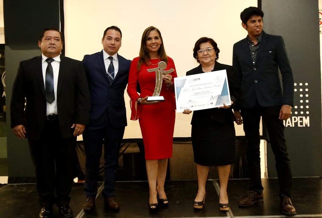Durante la ceremonia de entrega de Premios I+T Gob 2019 "Cooperación Digital desde Estado y Municipio", realizada en la capital del país, la Primera Autoridad Municipal recibió la presea por la aplicación del "Sistema de Control de Combustible"