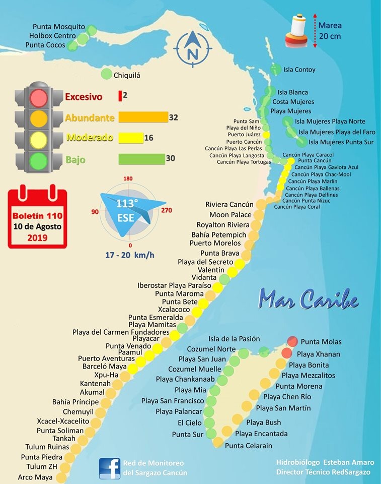 Sargazo en la costa de Quintana Roo, entre abundante y moderado