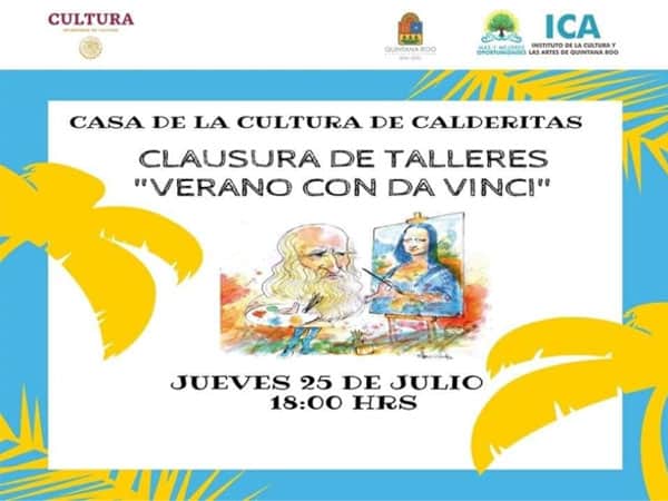 La Casa de la Cultura de Calderitas realizará la clausura de los talleres "Verano con Da Vinci" el jueves 25 de julio, a las seis de la tarde.