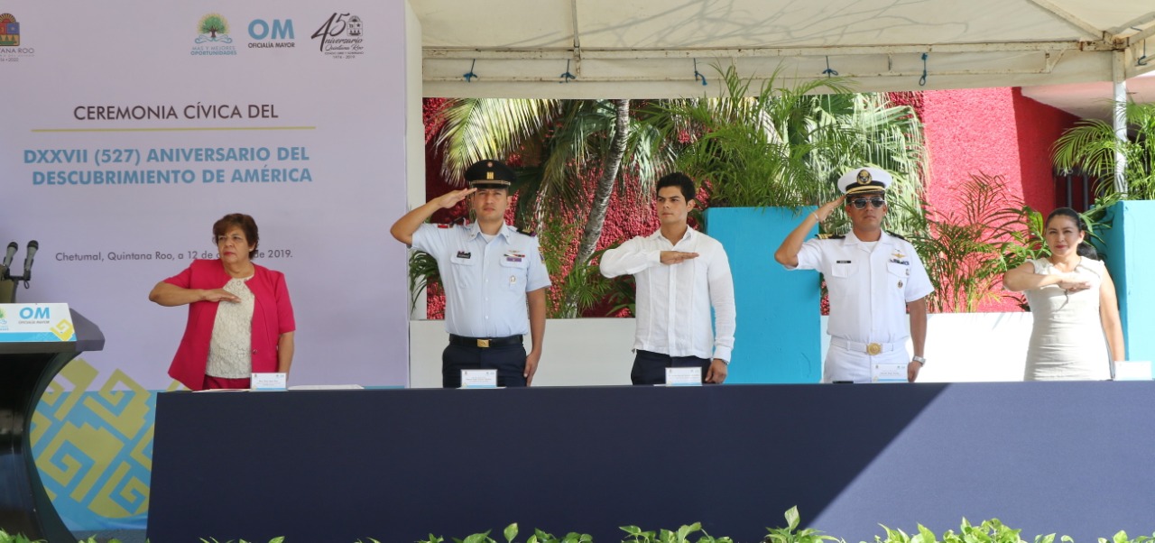 Se conmemoró en Chetumal el 527 aniversario del descubrimiento de América, hecho ocurrido el 12 de octubre de 1492, por el navegante Cristóbal Colón.