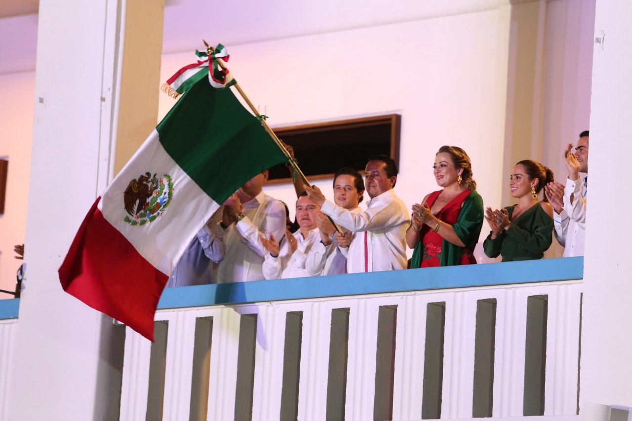 En un ambiente festivo, el presidente Víctor Mas Tah, encabeza el "Grito de Independencia"