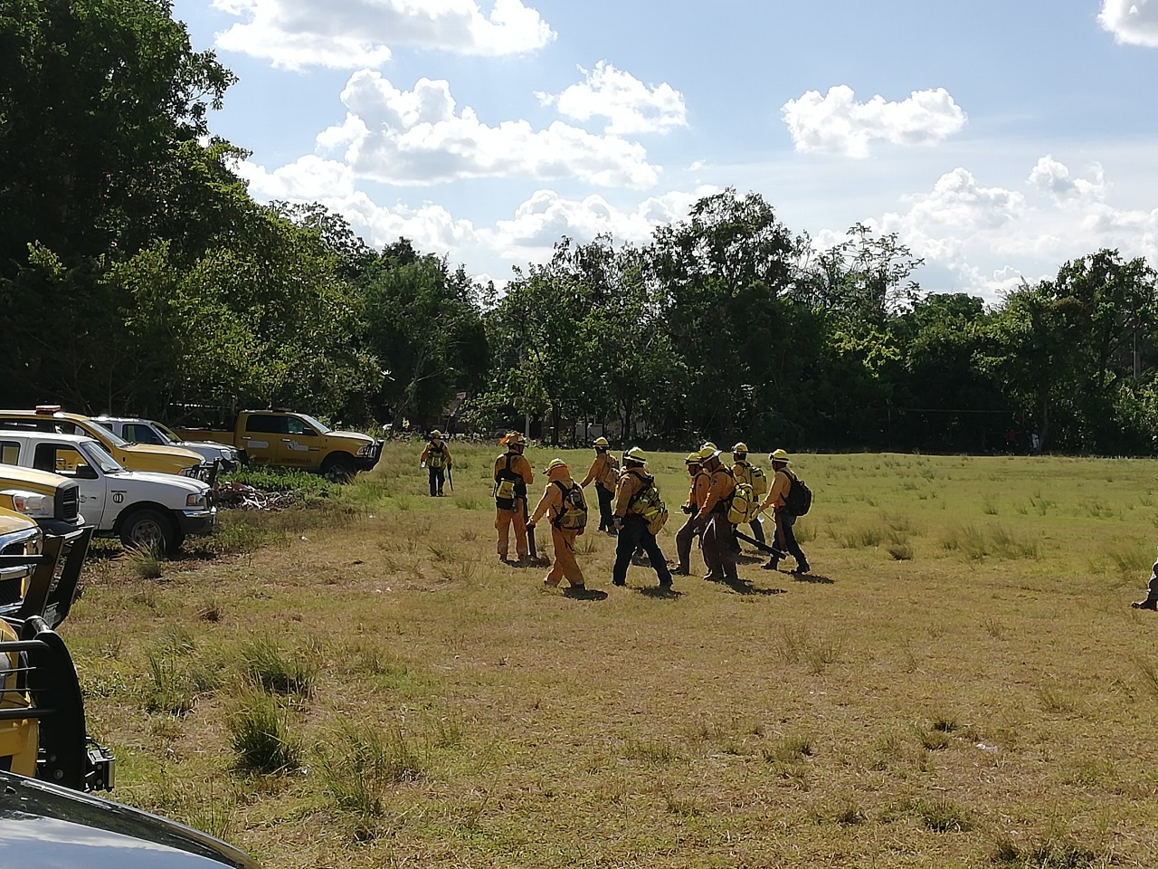 Brigadistas de las dependencias de los tres niveles de gobierno, mantienen una ardua lucha contra el fuego que viene afectando la zona Uaymil
