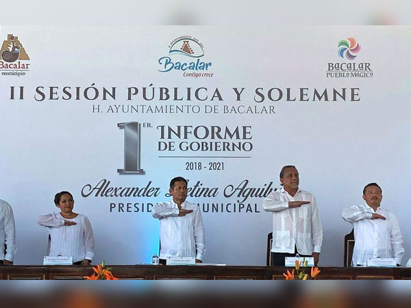 El alcalde Alexander Zetina Aguiluz rindió su primer informe sobre el estado que guarda la actual administración pública de Bacalar
