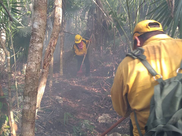 El Centro Estatal de Control de Incendios Forestales informó esta noche que ya se logró el control en un 65% del incendio forestal denominado Muyil que incide en el 0.4% del territorio que abarca la Reserva Natural Sian KaÔÇÖan. Se tiene una liquidación de 25% de las 2 mil 500 hectáreas en las que se presenta el fuego.
