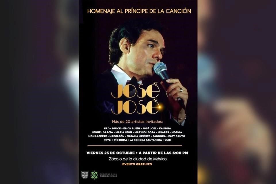 La Secretaría de Cultura de la Ciudad de México reveló a los encargados de homenajear al fallecido José José en el concierto que se celebrará el próximo 25 de octubre en el Zócalo capitalino