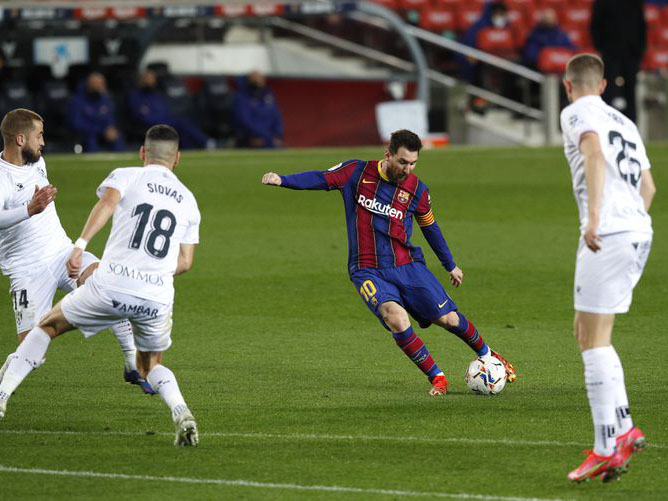 El Barcelona goleó 4-1 al último lugar Huesca en el último partido de la jornada 27 de LaLiga en el que Lionel Messi celebró con un doblete el igualar el récord de Xavi Hernández como futbolistas con más partidos disputados con el club azulgrana.