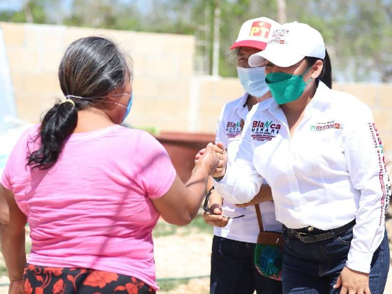 Puerto Morelos.- La candidata de la coalición "Juntos Haremos Historia" a la presidencia municipal de Puerto Morelos, Blanca Merari Tziu Muñoz, expone las acciones contenidas en el pilar "Tranquilidad para tu familia" que contempla su plan de trabajo