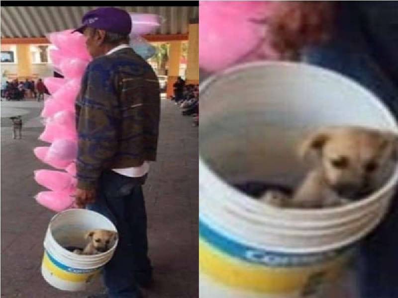 MÉXICO.- En redes se ha vuelto viral la imagen de un abuelito que vende algodones de azúcar pero lo más curioso es que lo hace en compañía de un cachorro en una cubeta. En la fotografía se aprecia a al abuelito con los algodones de azúcar y que en la mano trae una cubeta con un perrito adentro