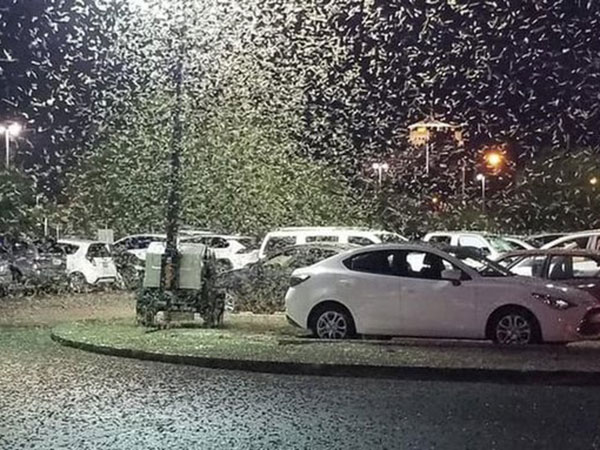 En redes sociales ya circulan imágenes del hecho, donde se ve algunas calles de Las Vegas, Nevada, cubierta por estos insectos.
