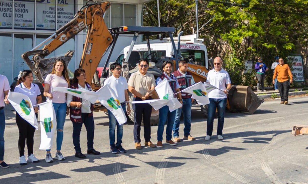 El presidente municipal de Tulum, Diego Castañón Trejo, dio el banderazo de inicio a la rehabilitación de la Avenida Okoót.