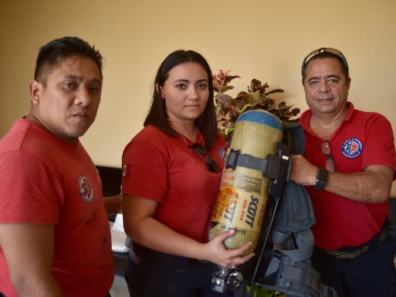 El director de Bomberos, León Salas Licea, explicó que recibieron dos tanques de respiración autónoma, cuyo costo se estima en 25 mil pesos cada uno