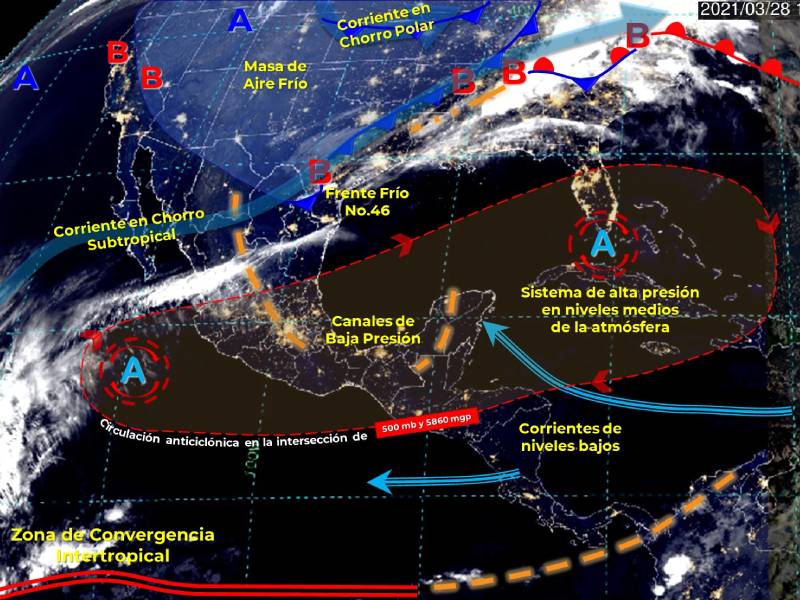 CIUDAD DE MÉXICO.- Este día, el frente No. 54 y la Décimo Cuarta Tormenta Invernal dejarán de afectar a México. Canales de baja presión sobre el interior de la República Mexicana, el calentamiento diurno y la entrada de humedad proveniente de ambos océanos, ocasionarán puntuales muy fuertes en Chiapas, descargas eléctricas y caída de granizo, […]