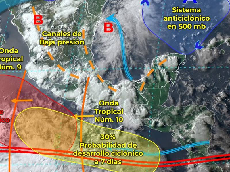 La onda tropical Núm. 13 recorrerá el centro y sur del territorio nacional, interaccionará con el canal de baja presión